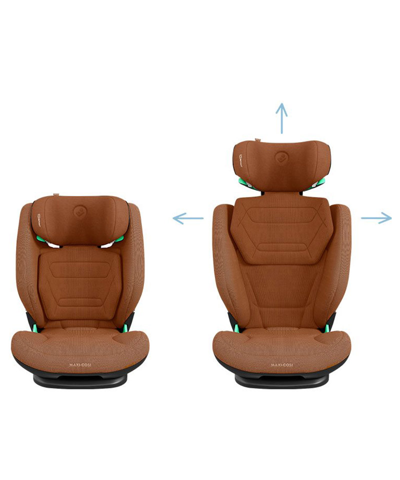 Huvudskyddet har precis som föregångaren små luftfyllda kuddar (AirProtect) för att ge huvud och axlar extra skydd. Nackstödet justeras enkelt i höjdled med en hand. Alla stolar godkända för standarden R129 får vara högst 44 cm breda. Det innebär att Rodifix Pro 2 är ett mycket bra val när man vill maximera plats i bilen. Bredden på stolen kan även ändras och flexar utåt till en bredd av 51 cm.